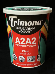 Atanas Valev, the founder of Trimona Bulgarian Yogurt uses A2 milk from a Pennsylvania Amish farm in his yogurt. “I have done probably over 500 demos in stores, mostly in Whole Foods,” says Valev, originally from Bulgaria. After the questions about Bulgarian yogurt (a slightly tart, tangy yogurt, made the way Valev’s Bulgarian grandmother made it) people at demos asked about A2A2 milk, featured prominently on the colorful label as of three years ago. Valev estimates 1% of the people at in-store demos knew what A2 milk was, compared to 30% today.